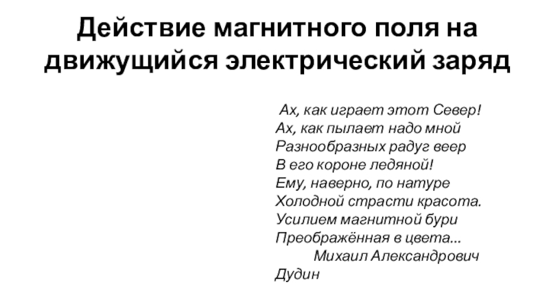 Слайд 25Действие магнитного поля на движущийся электрический заряд