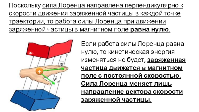 Слайд 34Поскольку сила Лоренца направлена перпендикулярно к скорости движения заряженной частицы