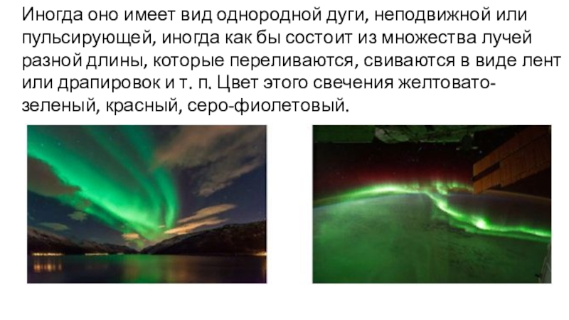 Слайд 45Иногда оно имеет вид однородной дуги, неподвижной или пульсирующей, иногда