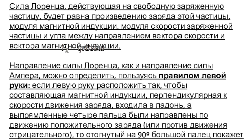 Слайд 33Сила Лоренца, действующая на свободную заряженную частицу, будет равна произведению