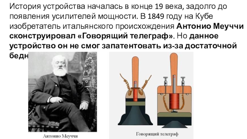 усилителей мощности. В 1849 году на Кубе изобретатель итальянского происхождения Антонио