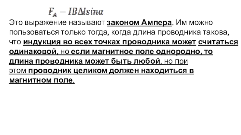 Слайд 9Это выражение называют законом Ампера. Им можно пользоваться только тогда, когда