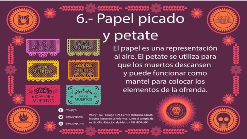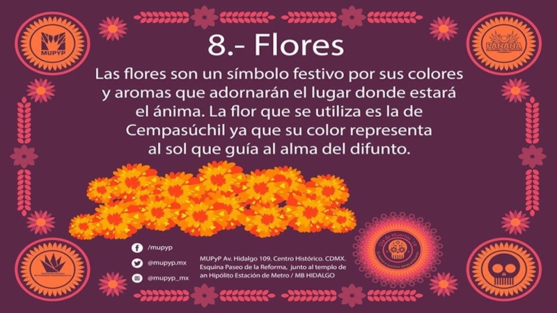 celebra el día de muertos los primeros días de noviembre de todos los años. Se trata de una celebración en la que se honra a los muertos de cada familia. Así, la celebración del día de los muertos une la época prehispánica y los elementos del catolicismo. honrar
