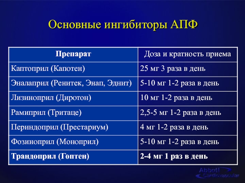 мм.рт.ст ; иАПФ или АРА – постоянно
