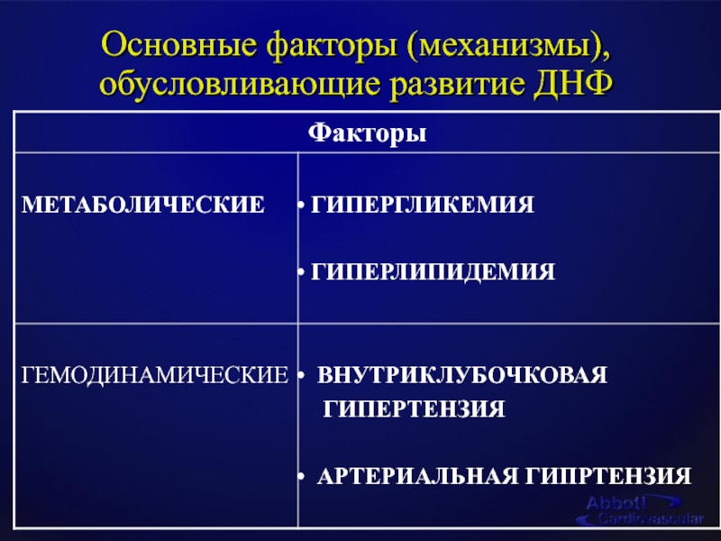 Слайд 7Основные факторы (механизмы), обусловливающие развитие ДНФ
