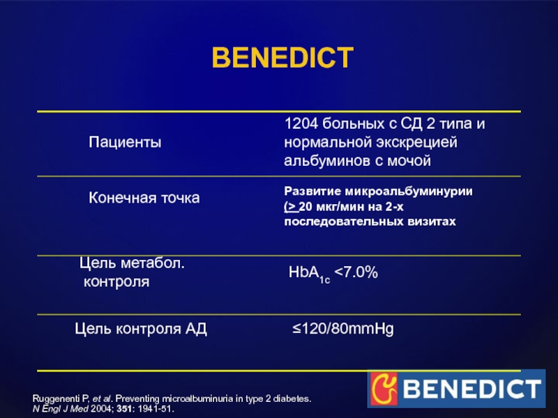 Ruggenenti P, et al. Preventing microalbuminuria in type 2 diabetes.
