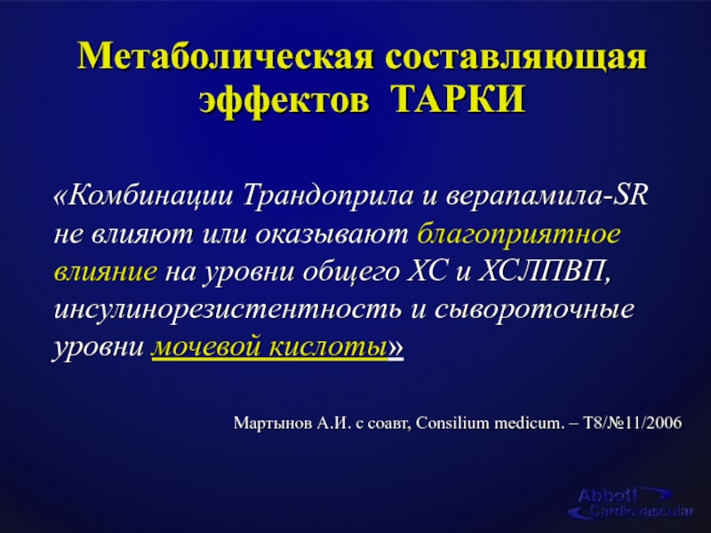 Слайд 34Метаболическая составляющая эффектов ТАРКИ