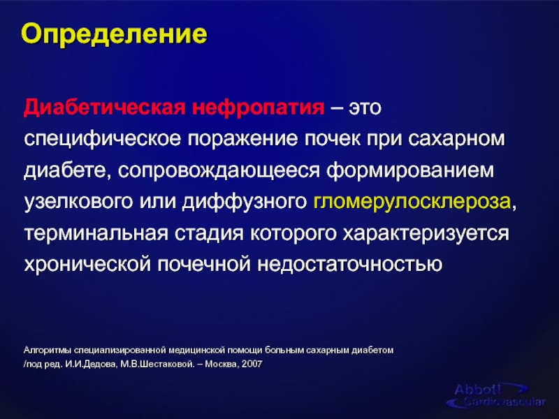 Слайд 1Диабетическая нефропатия: современные подходы к диагностике и лечению