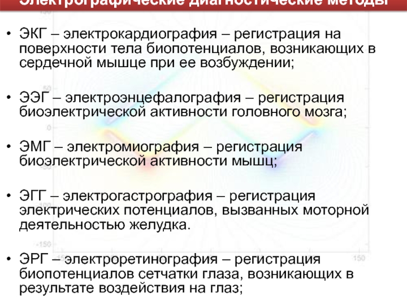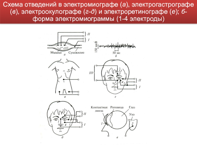 биоэлектрической активности головного мозга;ЭМГ – электромиография – регистрация биоэлектрической активности мышц;