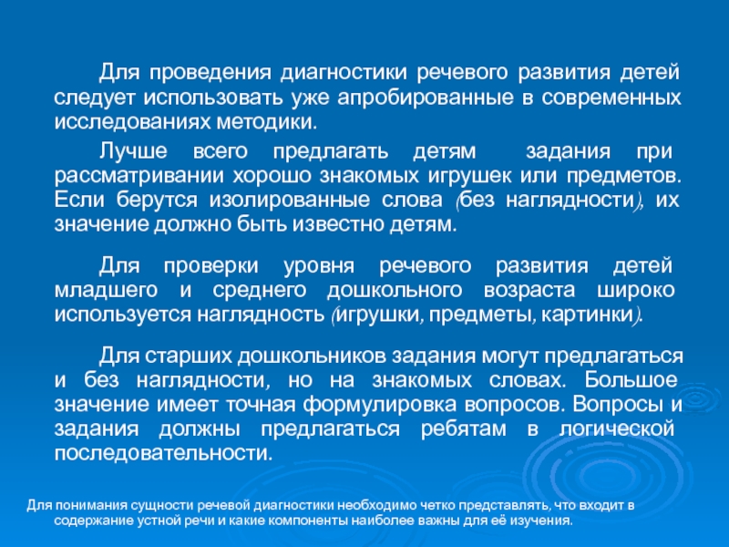 Слайд 25 Для проведения диагностики речевого развития детей следует использовать уже апробированные