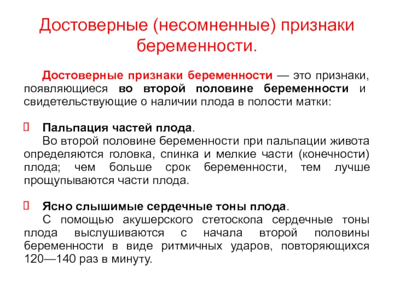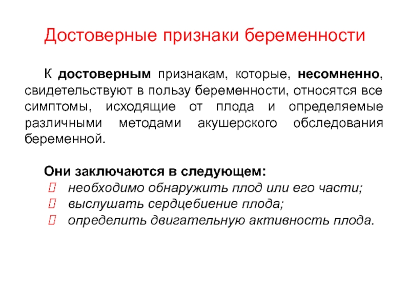 Слайд 11Достоверные признаки беременности