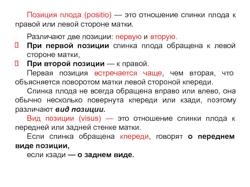 Слайд 29Позиция плода (positio) — это отношение спинки плода к правой