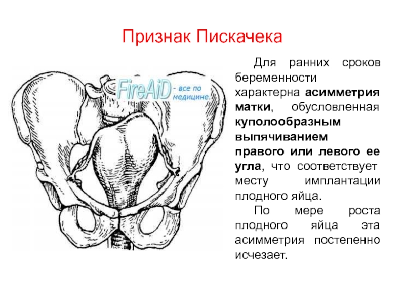 Для ранних сроков беременности характерна асимметрия матки, обусловленная куполообразным