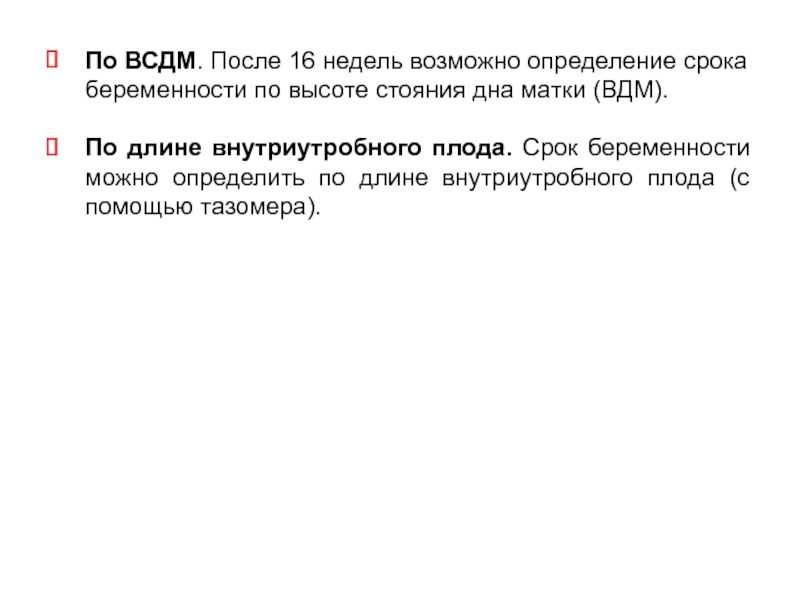 Слайд 42По ВСДМ. После 16 недель возможно определение срока беременности по