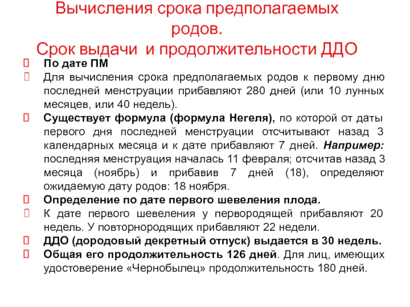 Слайд 43Вычисления срока предполагаемых родов.