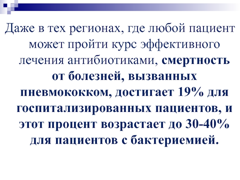 эффективного лечения антибиотиками, смертность от болезней, вызванных пневмококком, достигает 19%