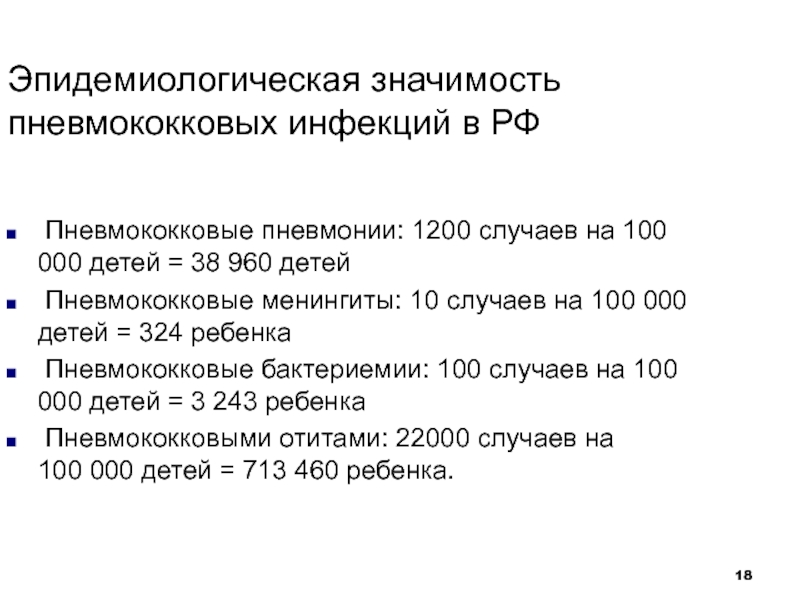 Слайд 18Эпидемиологическая значимость пневмококковых инфекций в РФ