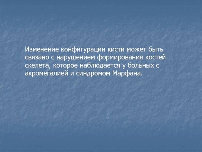 Слайд 30Изменение конфигурации кисти может быть связано с нарушением формирования костей