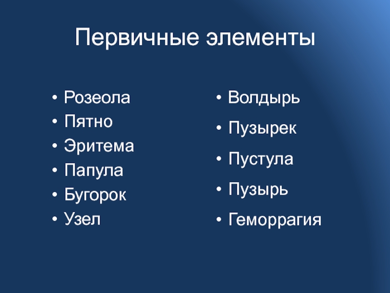 Слайд 4Первичные элементы