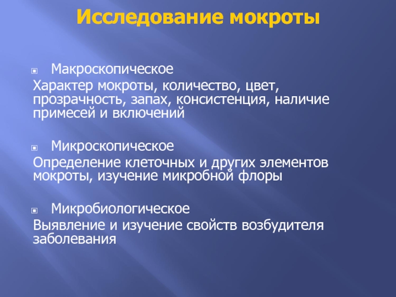 Определение клеточных и других элементов мокроты, изучение микробной флоры