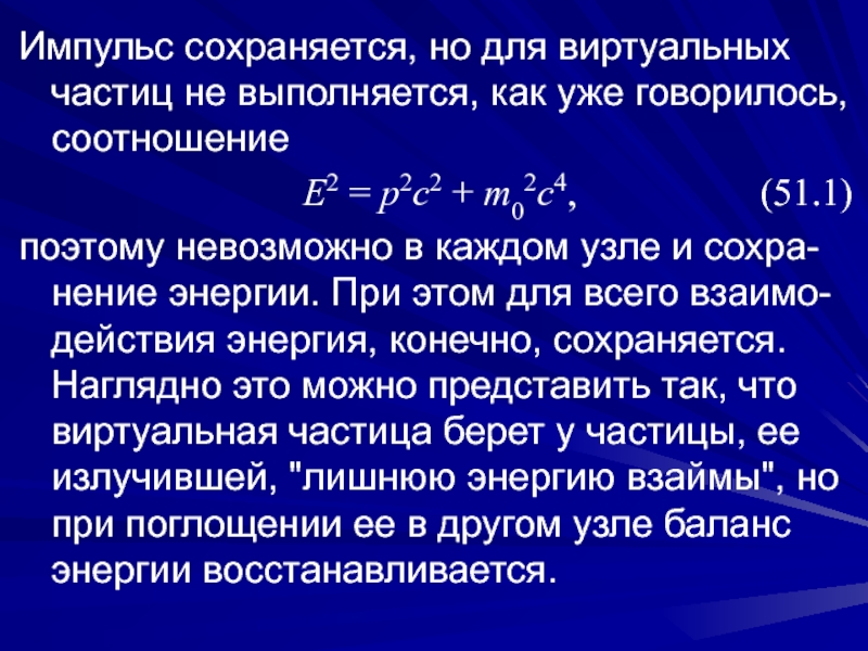Слайд 7Импульс сохраняется, но для виртуальных частиц не выполняется, как уже