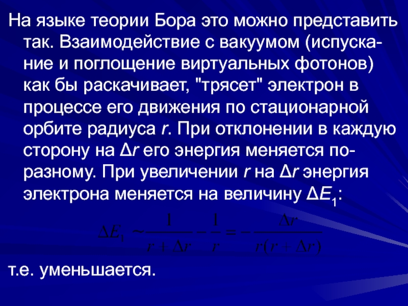 Слайд 19При уменьшении r на Δr энергия электрона увеличивается на ΔE2: