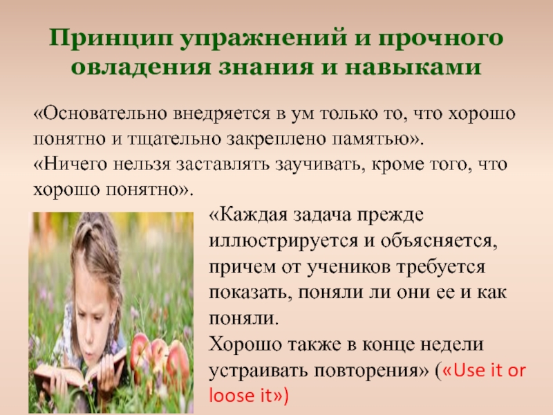 Хорошо также в конце недели устраивать повторения» («Use it or loose it»)