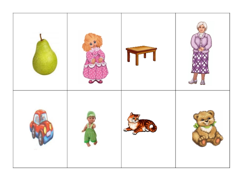 2 вариант. Показать на карточке и называть предметов посуды, игрушек, животных... Рассказать о них.