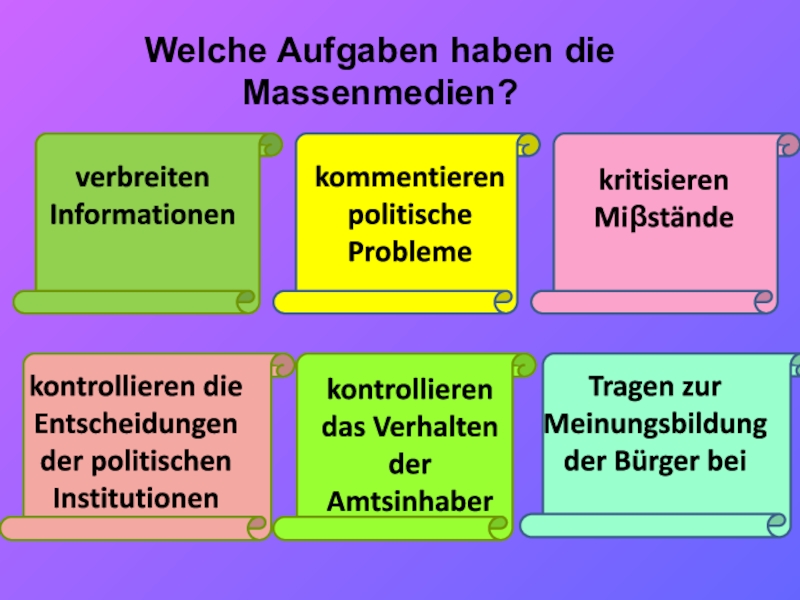 Слайд 4Welche Aufgaben haben die Massenmedien?