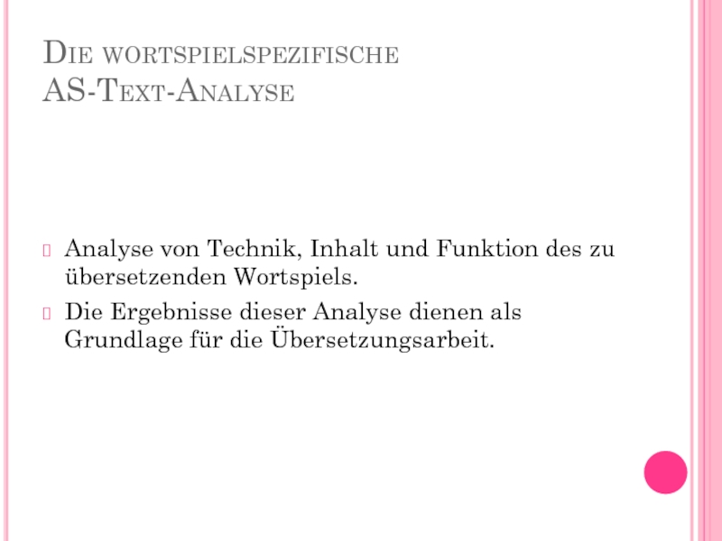 Слайд 8Die wortspielspezifische AS-Text-Analyse