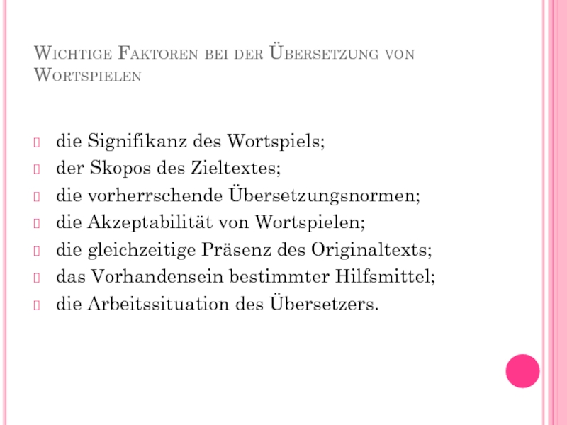 Слайд 14Wichtige Faktoren bei der Übersetzung von Wortspielen