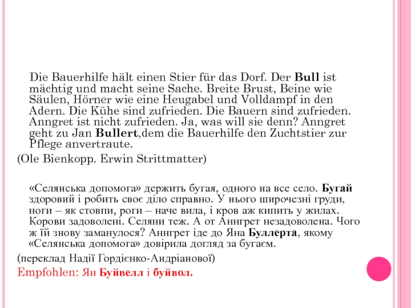 Слайд 12 Die Bauerhilfe hält einen Stier für das Dorf.