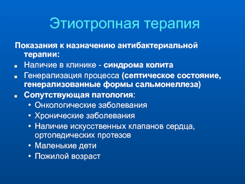 Генерализация процесса (септическое состояние, генерализованные формы сальмонеллеза)