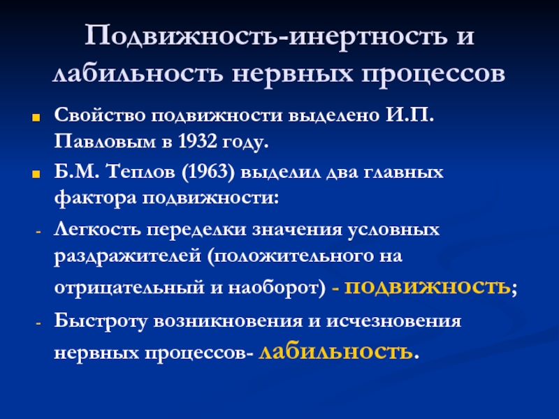 Слайд 7Подвижность-инертность и лабильность нервных процессов