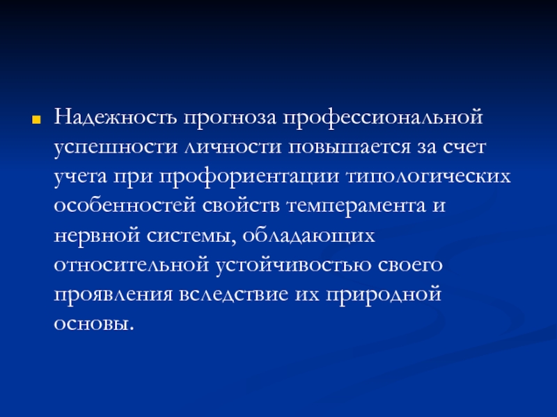«Оперативной надежности человека», базирующееся на типологических свойствах нервной системы и включающее выносливость к экстренному напряжению и перенапряжению, помехоустойчивость.