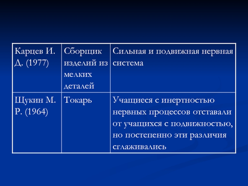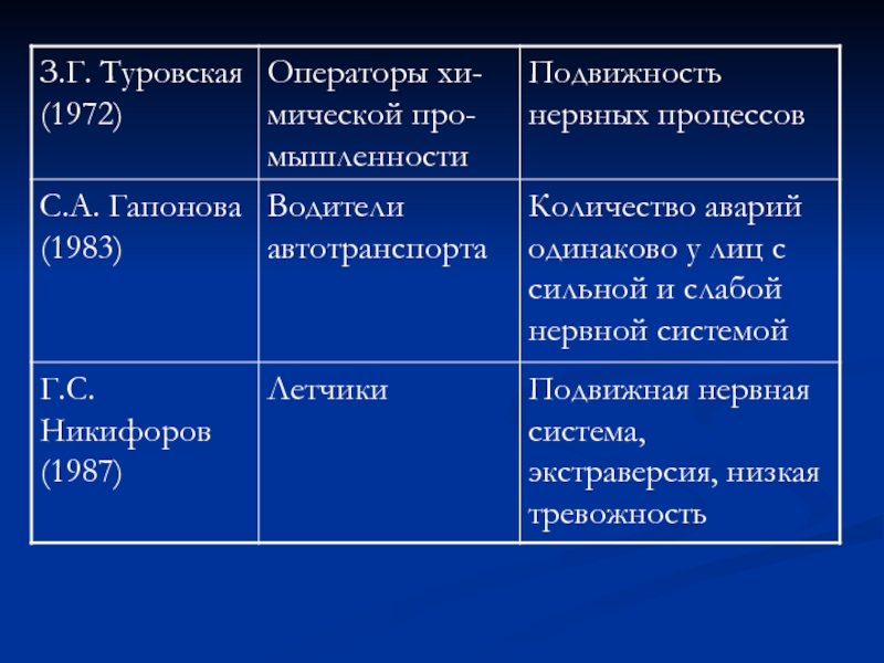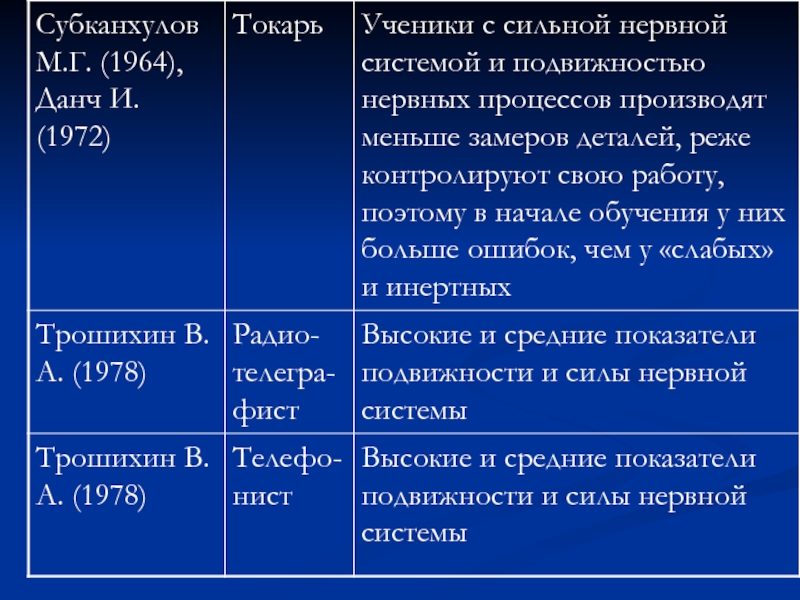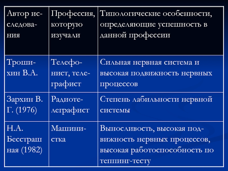 корректоров и наборщиков типографий преобладают лица с сильной нервной системой и инертностью нервных процессов по возбуждению и преобладание торможения по «внешнему» балансу.