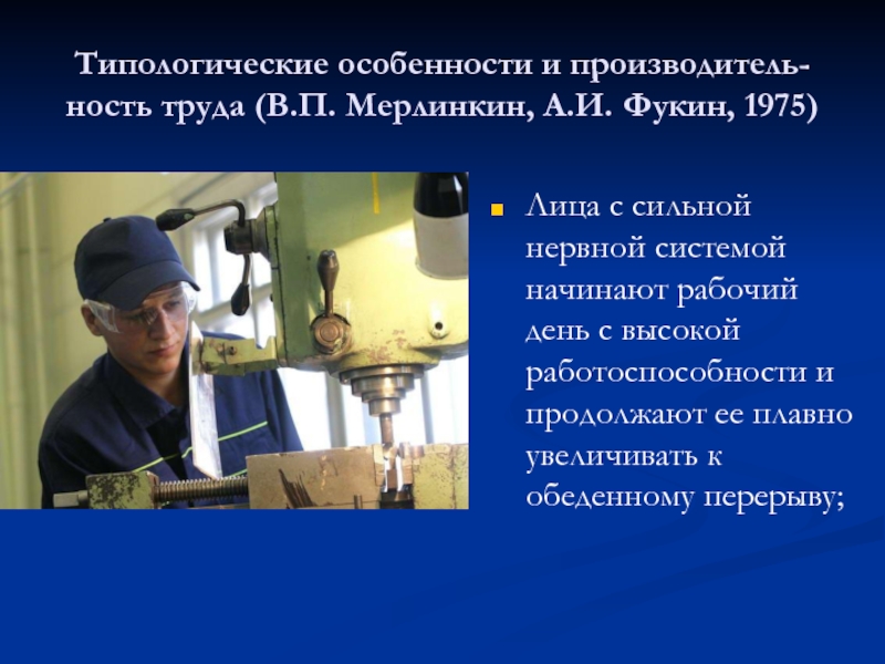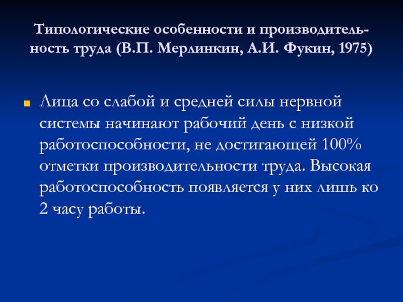 Слайд 57Типологические особенности и производитель-ность труда (В.П. Мерлинкин, А.И. Фукин, 1975)