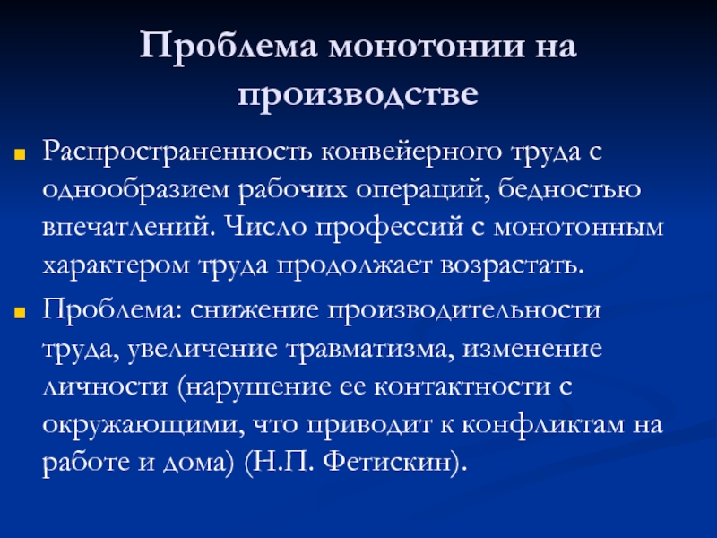 бедностью впечатлений. Число профессий с монотонным характером труда продолжает возрастать.