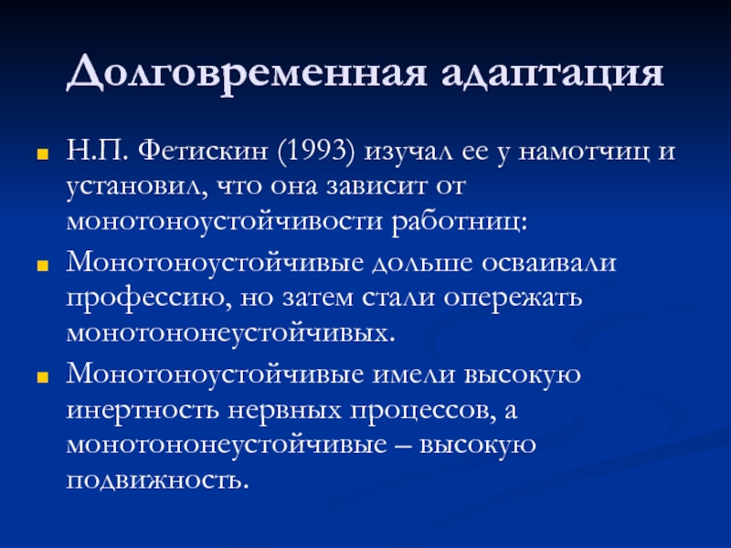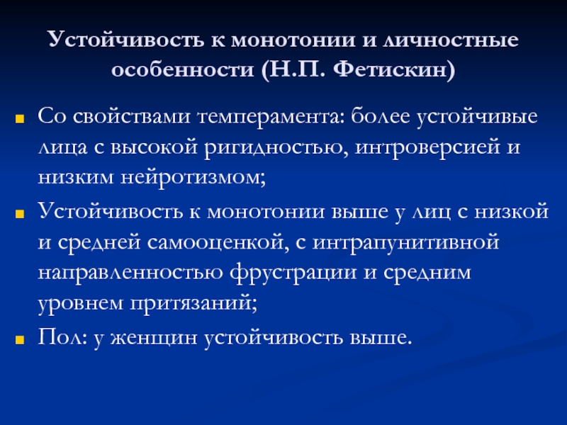 Слайд 41Устойчивость к монотонии и личностные особенности (Н.П. Фетискин)