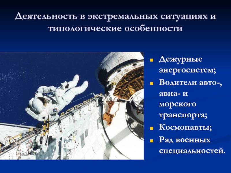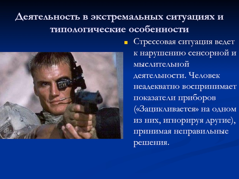 Слайд 45Деятельность в экстремальных ситуациях и типологические особенности
