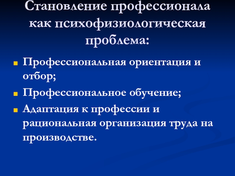 Слайд 20Становление профессионала как психофизиологическая проблема: