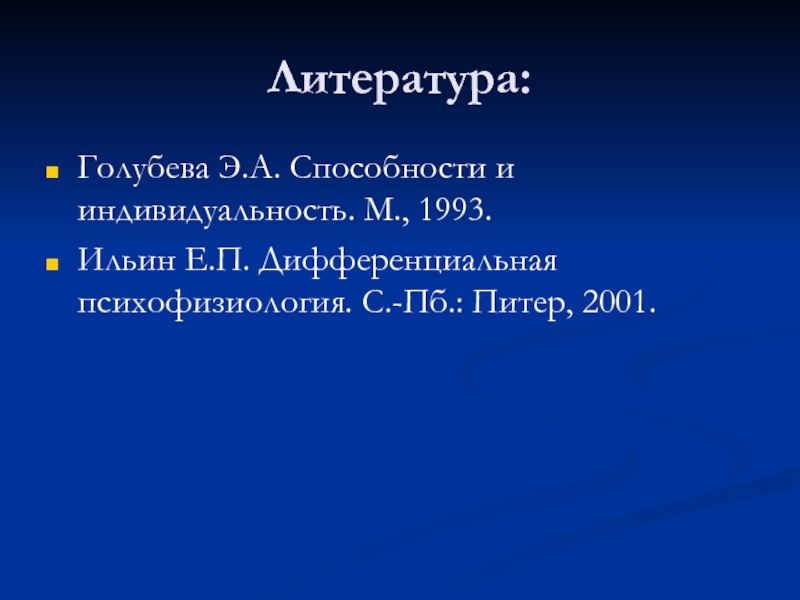 Голубева Э.А. Способности и индивидуальность. М., 1993.