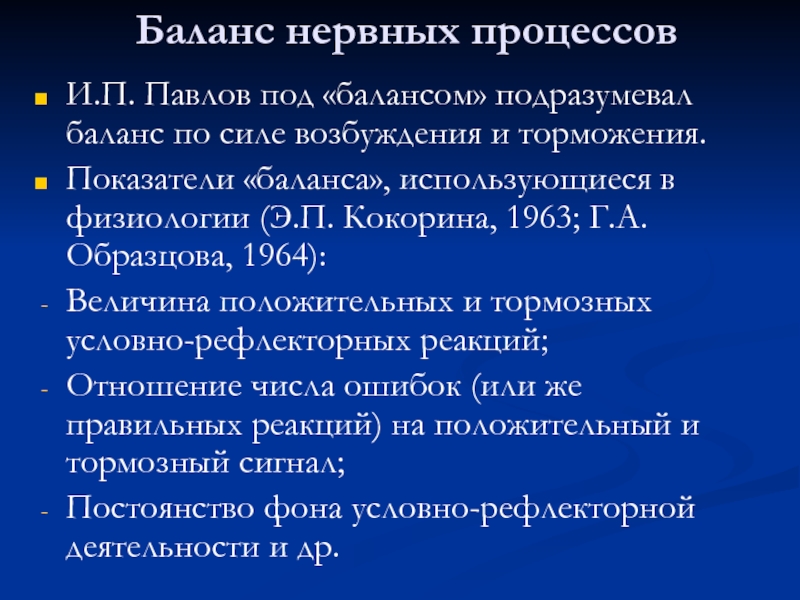 И.П. Павлов под «балансом» подразумевал баланс по силе