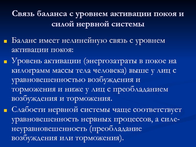 Слайд 16Связь баланса с уровнем активации покоя и силой нервной системы