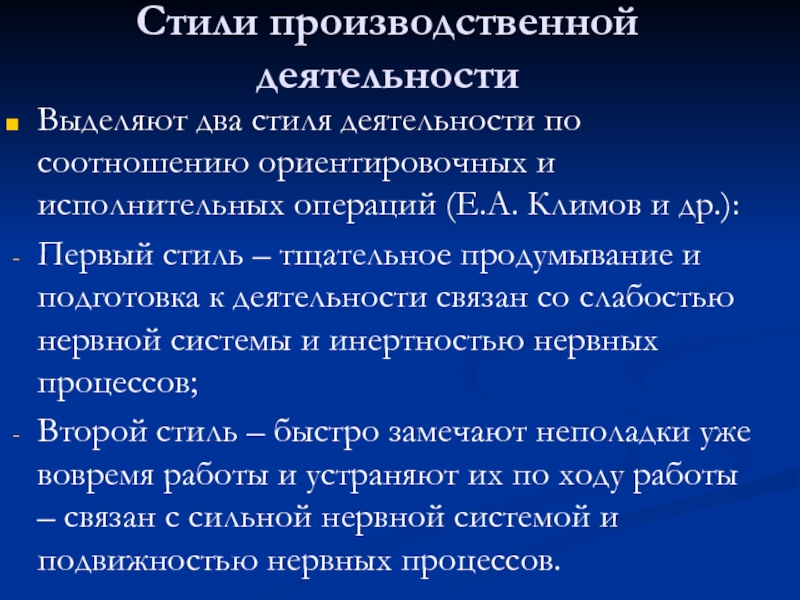 Выделяют два стиля деятельности по соотношению ориентировочных и