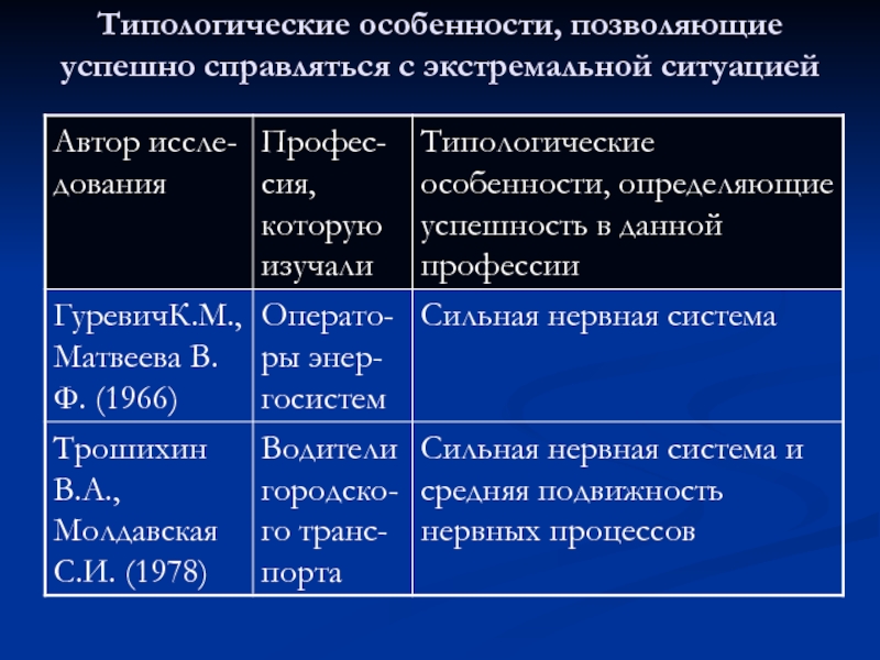 Слайд 46Типологические особенности, позволяющие успешно справляться с экстремальной ситуацией