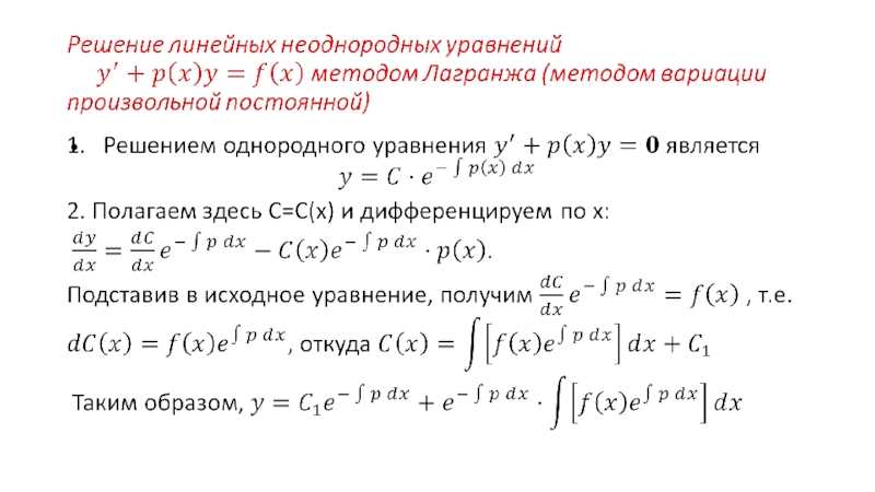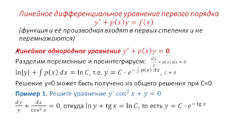 Дифференциальные уравнения  Лекция 2: Линейные дифференциальные уравнения первого порядка Линейные однородные уравненияЛинейные неоднородные уравнения: метод вариации