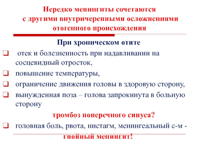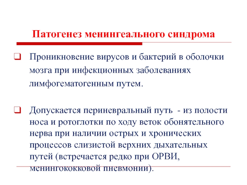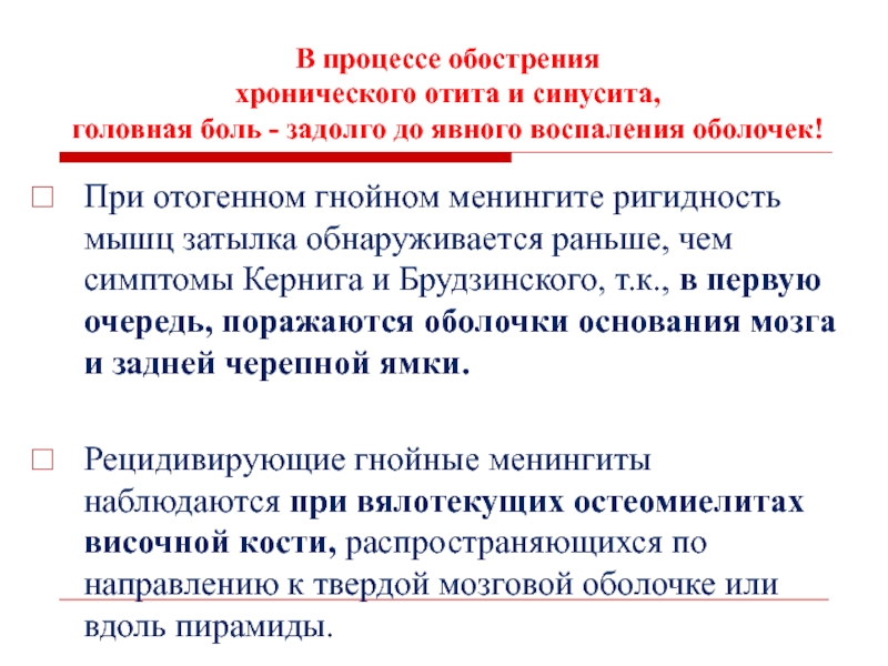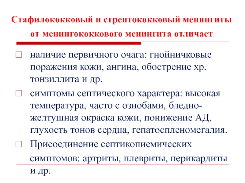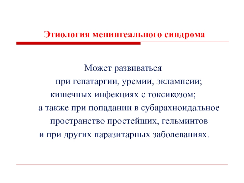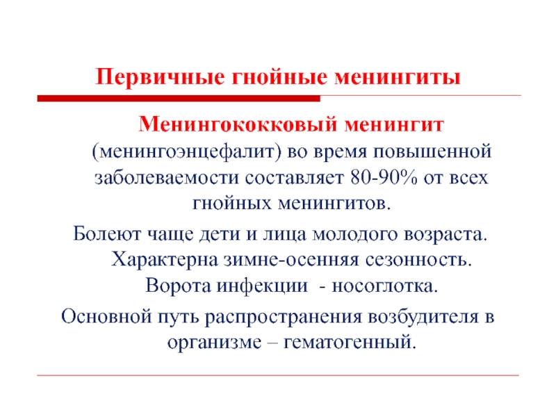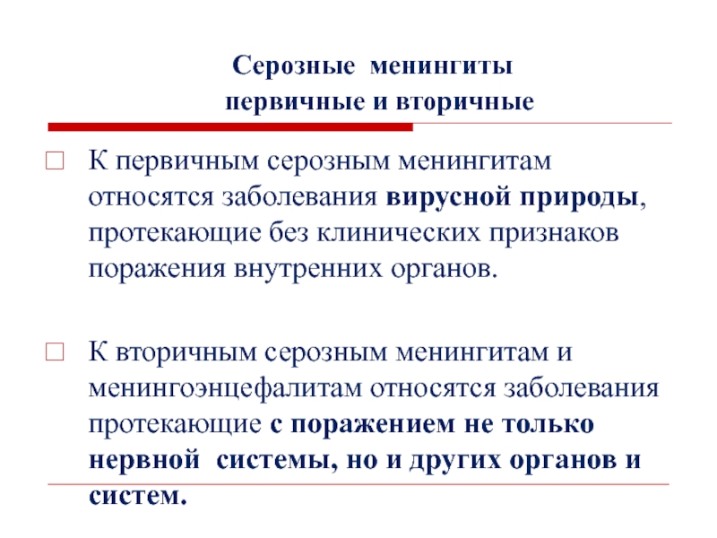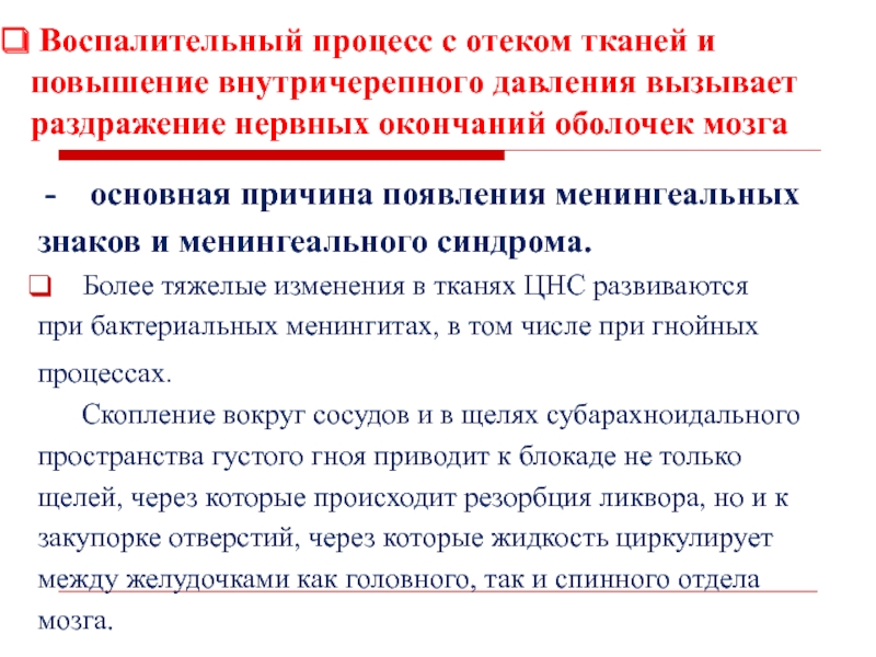 - менингеальные симптомы возникают к концу первой недели заболевания;