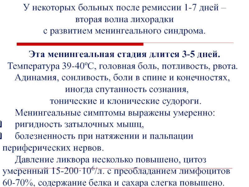 Слайд 79У некоторых больных после ремиссии 1-7 дней –
