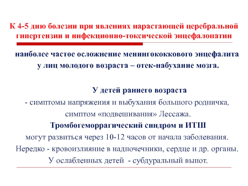 - судороги, нарушение сознания при отсутствии специфического лечения - после 10 дня болезни.